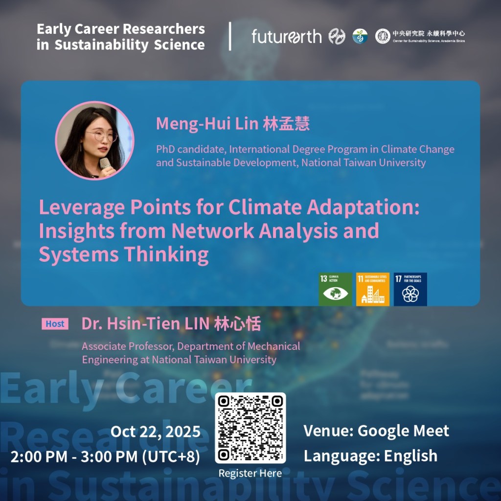 Speaker|Meng-Hui Lin 林孟慧- PhD candidate, International Degree Program in Climate Change and Sustainable Development, National Taiwan