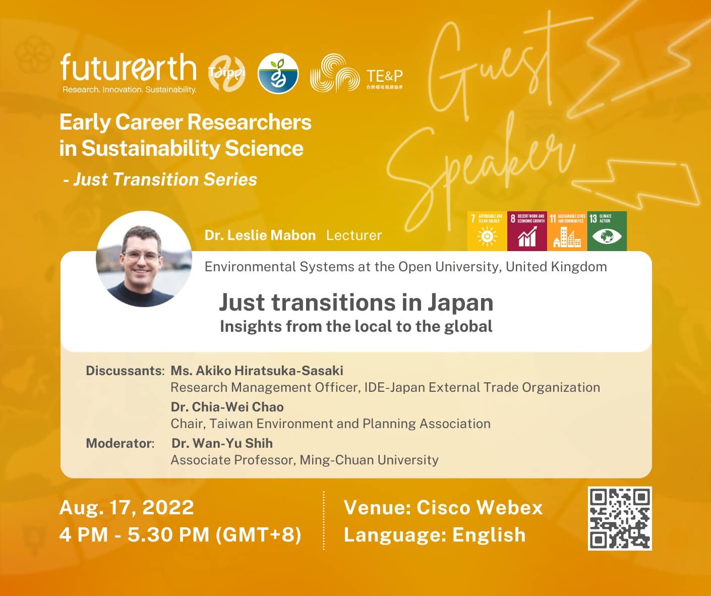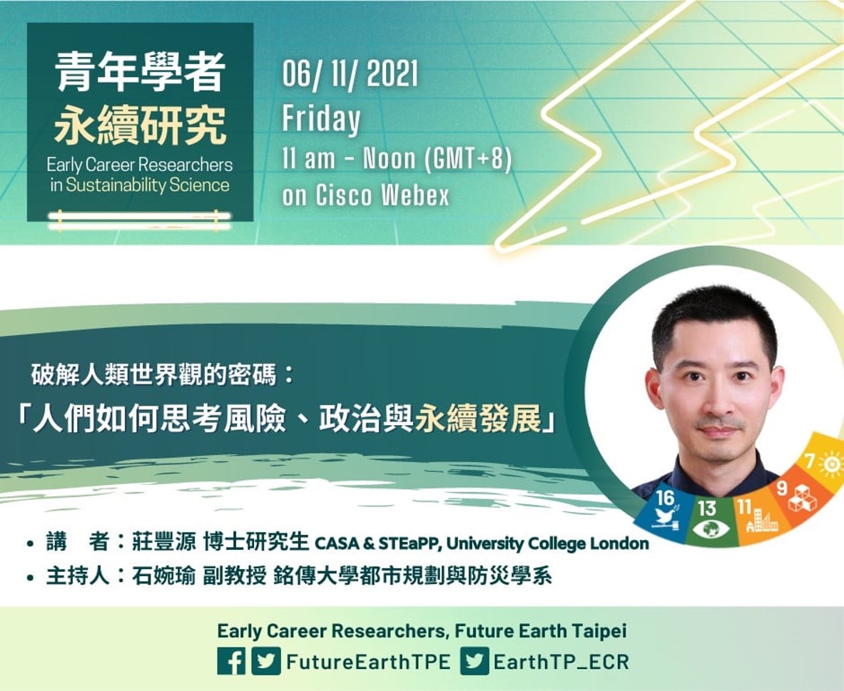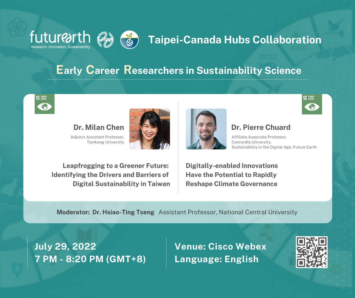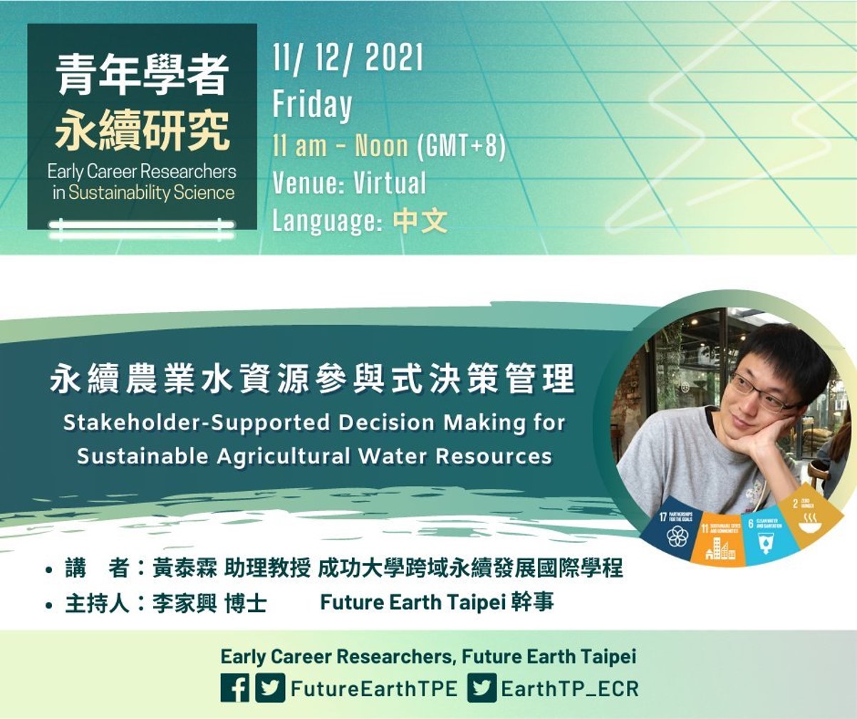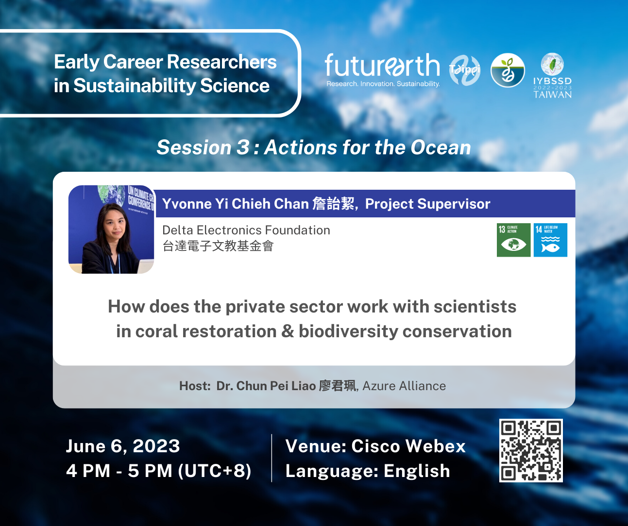 In 2022, we are working toward engaging more ECRs from outside Taiwan for the conversation with Taiwan ECRs and other researchers. This webinar is currently open for nominations for ECR speakers from the Future Earth network.